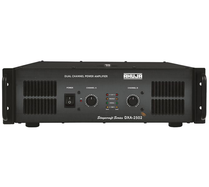 | Indicators | ON, Signal, Clip, Temperatures, Protect (Ch. A & B) |