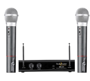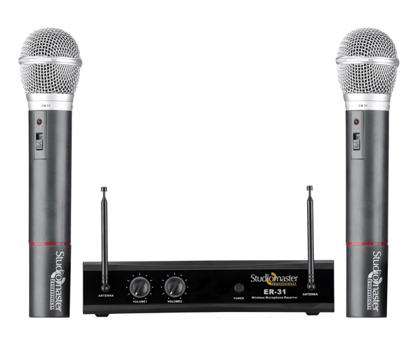 The Studiomaster Professional ER 31 series is a high quality duet VHF microphone system designed to suit the needs of various professional applications.