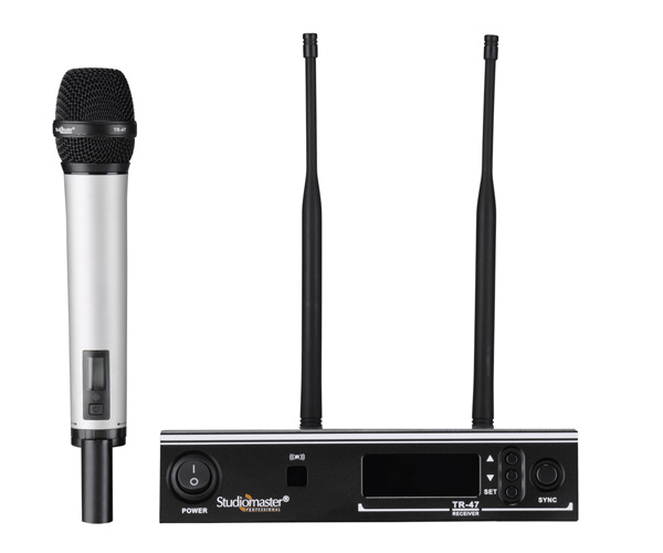 The Studiomaster Professional TR 47H is a Handheld UHF wireless microphone technology system engineered for the high quality performance for virtually any application. This Series of UHF wireless system offers unprecedented flexibility & versatility.
