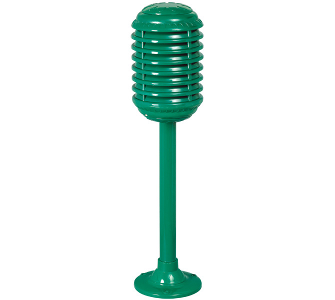 - Rugged and stable construction, floor mountable garden speaker.